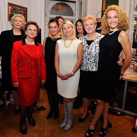 Oben rechts: V.l. Regina Preloznik, Beauty-Doc Eva Wegrostek, Designerin Andrea Baranyai, Organisatorin Maria Rauch-Kallat und Ildikó Raimondi